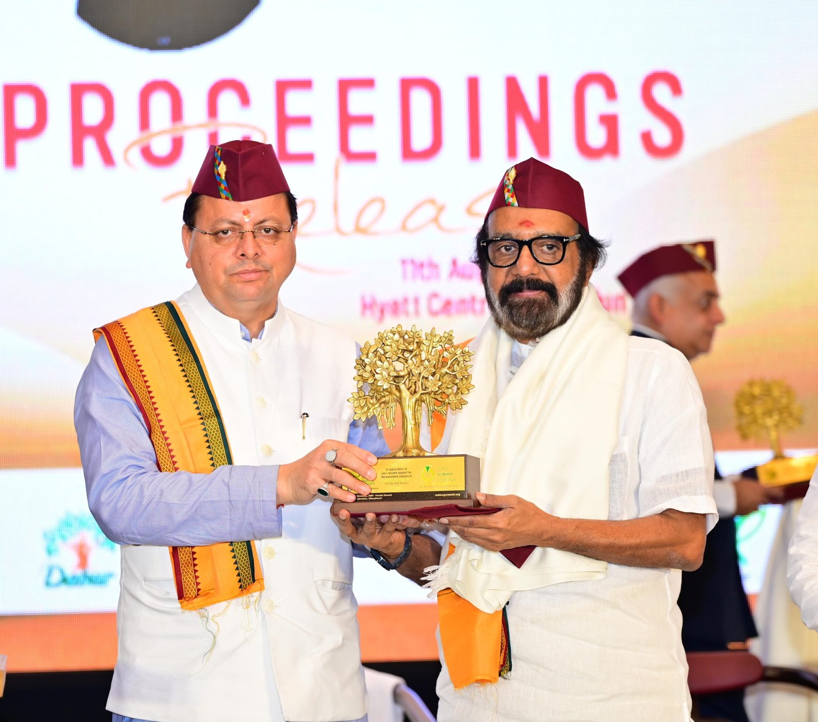 आज ओल्ड राजपुर स्थित एक होटल में 10वीं विश्व आयुर्वेद कांग्रेस एवं आरोग्य एक्सपो के प्रोसेडिंग विमोचन समारोह को संबोधित करते हुए, मुख्यमंत्री श्री पुष्कर सिंह धामी ने कहा कि ये हमारे लिए अत्यंत गर्व का विषय है कि देवभूमि उत्तराखंड 10वीं विश्व आयुर्वेद कांग्रेस और आरोग्य एक्सपो का आयोजन करने में सफल रहा, साथ ही अब हम उस ऐतिहासिक आयोजन की स्मृतियों और उपलब्धियों को संजोने के लिए प्रोसिडिंग का विमोचन कर रहे हैं। उन्होंने कहा कि ये मात्र एक दस्तावेज नहीं बल्कि ज्ञान, अनुभव और गहन विचार-विमर्श का सार तत्व है, जो आने वाले वर्षों में आयुर्वेद के क्षेत्र में अनुसंधान, नीति-निर्माण और जन स्वास्थ्य की दिशा तय करने में अपनी महत्वपूर्ण भूमिका निभाएगा।