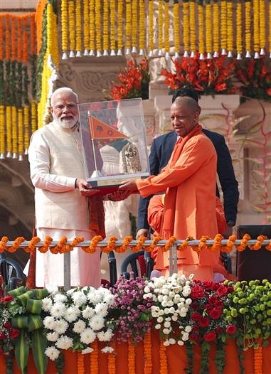 प्रधानमंत्री ने कहा कि विकसित भारत की यात्रा को गति देने के लिए ऐसे रथ की आवश्यकता है जिसके पहिए वीरता और धैर्य से संचालित हों, अर्थात चुनौतियों का सामना करने का साहस और परिणाम प्राप्त होने तक अडिग रहने का धैर्य। उन्होंने इस बात पर जोर दिया कि इस रथ का ध्वज सत्य और सर्वोच्च आचरण होना चाहिए, अर्थात नीति, नीयत और नैतिकता से कभी समझौता नहीं किया जाना चाहिए। उन्होंने कहा कि इस रथ के घोड़े बल, बुद्धि, अनुशासन और परोपकार होने चाहिए, अर्थात शक्ति, बुद्धि, संयम और दूसरों की सेवा की भावना होनी चाहिए। उन्होंने जोर देकर कहा कि इस रथ की लगाम क्षमा, करुणा और समता होनी चाहिए, अर्थात सफलता में अहंकार नहीं होना चाहिए और असफलता में भी दूसरों के प्रति सम्मान होना चाहिए। श्री मोदी ने श्रद्धापूर्वक कहा कि यह क्षण कंधे से कंधा मिलाकर चलने, गति बढ़ाने और रामराज्य से प्रेरित भारत के निर्माण का है। उन्होंने अंत में कहा कि यह तभी संभव है जब राष्ट्रहित, स्वार्थ से ऊपर रहे, और एक बार फिर सभी को हार्दिक बधाई और शुभकामनाएं दीं।